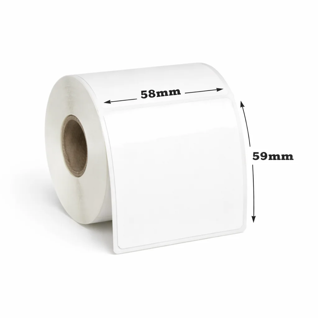 Uzlīmes paredzētas drukai ar termotransfēra printeriem (izmantojot krāslenti), kas nodrošina izturīgu un skaidru svītrkodu, QR kodu un teksta attēlojumu. 58×59 mm formāts ir piemērots produktu marķēšanai, loģistikai, ražošanai un industriālai videi.